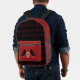 This awesome backpack features a graphic image of a skull with red eyes and yellow teeth covered in cracks. The creepy skull has a large raven standing either side of it like a guardian. The ravens are black with grey legs and claws. They also have beady black eyes.