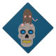 This awesome graduation cap topper features a creepy grey skull with glowing blue eyes and rotting yellow teeth. On top of the skull is a brown rat with pink ears, tail, paws and nose and blue eyes, The rat has an arched back ready to leap out at you. A great design for rat lovers and for Halloween.