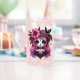 Sip in style with this striking can glass featuring a gothic skull character adorned with vibrant pink and purple hair, a floral crown, and a red heart motif. Inspired by Día de los Muertos and alternative fashion, this double-sided design blends dark whimsy with bold colour—perfect for iced coffee lovers, collectors, and fans of expressive drinkware.