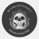 A skull and ornate border on a black background, and "We Dare You to Have a Wicked Good Time" or any wording you choose, in chic white lettering on these Halloween party round stickers available in 2 sizes and several styles. MATCHING items in our store.
