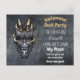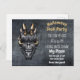 Gothic skull on grey and black background. Skull image and party details (all of which you can customize) in gold and white colour text.