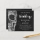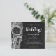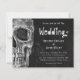 Gothic skull head vintage black and white Halloween wedding budget invitation flat card. Fun, spooky Hallowedding. Till Death Do Us Part script on texture print background on back. Image copyright Marg Seregelyi Photography.