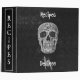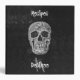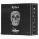 Black and white skull head Gothic grunge texture. Spooky Recipes Monogram kitchen cookbook. Cool, trendy, modern, scary vintage style Halloween design. Image copyright Marg Seregelyi Photography.