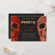 Gothic skull head orange, black vintage style Halloween wedding invitation flat card invitation. Celebrate your Hallowedding celebration with this fun cool design. Till Death Do Us Part script. Image copyright Marg Seregelyi Photography.
