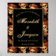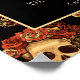 This gothic wedding poster welcomes your guests with a pattern of creepy skulls floating in a black abyss behind your monogram text. Each skull is adorned with red roses for your romantic occasion on Halloween. Their empty soulless eyes are contrasted sharply against the goth rose crown and bouquets of dead flowers. A funny and morbid twist on marriage.