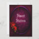Trendy, Gothic, custom sweet sixteen birthday invites for women. With a beautiful printed image of wilting red roses on an oval frame with a background of skulls. These are double sided invites and all text, font, and font colour can be changed if desired. If you would like help to customize your product or would like matching products please contact me through my store and i will be very happy to help you.