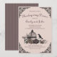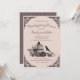 This Gothic Thanksgiving Skulls, Pumpkin & Fall Leaves Invitation Invitation features a hand-drawn illustration of a Victorian birdcage with roses, pumpkins, skulls, raven, and foliage in a moody palette of plums and creams, all against and elegant soft blush pink background. Personalize with your event details and RSVP information. The back features an elegant plum and taupe pinstriped pattern.