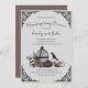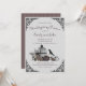 This Gothic Thanksgiving Skulls, Pumpkin & Fall Leaves Invitation Invitation features a hand-drawn illustration of a Victorian birdcage with roses, pumpkins, skulls, raven, and foliage in a moody palette of plums and creams, all against and elegant soft grey background. Personalize with your event details and RSVP information. The back features an elegant plum and taupe pinstriped pattern.