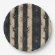 Gothic Spider and Web Striped Halloween Paper Plate - A spooky pattern featuring distressed vertical stripes in dark and light tones, adorned with detailed spiders and intricate webs. The vintage-style textures and eerie motifs create a mysterious, gothic charm—perfect for Halloween and horror-inspired space.