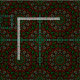 Green, red, yellow and white gothic stained glass leaves mandala pattern on a black background.