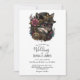 Gothic Steampumk Wolf Pink Floral Wedding Invitation