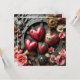 Pretty personalized gothic steampunk photo template Valentine's Day card. Pretty gold and red roses, flowers, skull, metal hearts and metal gears, The back has three spaces for pictures in the shape of a heart. You can edit the text too in the personalize area.