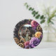 A gorgeous charming floral steampunk Save the Date card. The front is adorned with beautiful purple roses, gold and copper gears and a template to upload your favourite photo. This is made in gold, purple and black tones and has a gothic aesthetic. Add all your save the date wedding information on the back in the personalize area.