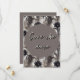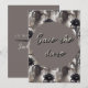 A classic watercolour style pattern of black amaryllis flowers provide the background to this striking save the date design. Moody tones of black and grey, and a grunge style font add to the dark ethereal theme of this alternative wedding suite.