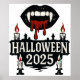 Celebrate Halloween 2025 with this gothic red, black, and white design featuring vampire fangs, dripping blood, and eerie candles. Ideal for invitations, mugs, shirts, and party decor.