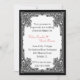 Formal wedding rehearsal dinner invitation, done in white and black. A white text background, with a black ornate Gothic style baroque frame and black border highlights this great looking invitation. The couple's names in red script text stands out nicely to to draw your eye away from the fancy frame. Customize the text in font style, colour, and size to your liking.
