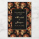 This gothic wedding custom mini wine label features a pattern of creepy skulls floating in a black abyss behind your custom text. Each skull is adorned with red roses for your romantic occasion. Their empty soulless eyes are contrasted sharply against the goth rose crown and bouquets of dead flowers. A funny and morbid twist on marriage.
