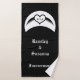 This awesome bath towel features a beautiful gothic black heart with raven wings on either side. The middle of the heart has custom text inside it so you can include the initials of the happy couple. There is more custom text so you can include the names of the happy couple and a message.