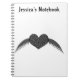 This awesome customizable notebook features a pretty gothic black heart with the appearance of fine lace. The heart is flanked on both sides with shining metallic silver wings. There is customizable text at the top of the notebook allowing you to personalize it for yourself or give it as a gift.