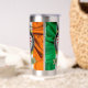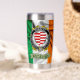 Le blouson irlandais Barrett, encastré dans un badge noir et blanc, est joliment exposé sur ce chevalet isolé. Dotée du drapeau irlandais en arrière - plan, cette tumbler garde les boissons froides et chaudes chaudes ! Prenez le travail, les réunions de famille, donnez comme un cadeau et mieux encore, prenez votre boisson préférée "sur le chemin". Peut aussi être personnalisé ! Erin go Bragh !