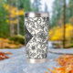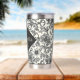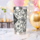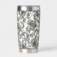 This stylish Monogram William Morris Floral design features a black and cream floral pattern with a diamond initial and name monogram. This beautiful insulated tumbler keeps drinks hot or cold for hours, making it a perfect, personalized gift for women who love Art Nouveau and appreciate elegant, practical accessories for home or travel.
