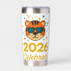 A trendy cartoon tiger in party sunglasses pops confetti, bringing a fun and bold twist to 2026 celebrations.