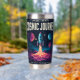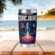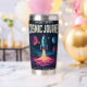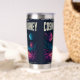 Embark on a daily adventure with this stunning, vivid cosmic art design. Featuring a classic rocket blasting off through a fiery cloudscape, the illustration uses an eye-catching palette of neon pinks, purples, and blues that pop against the dark starry background. The bold typography declares "COSMIC JOURNEY" and "EXPLORE • INFINITY," capturing the spirit of space travel and the unknown. This insulated tumbler is perfect for science fiction fans, astronomers, dreamers, or anyone who appreciates maximalist, high-energy artwork.
