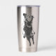 A Labrador lifts into a dotted midair arc, ball secure and focused. Black-and-white balance keeps mornings bright and playful without clutter. Simple joy for dog people.