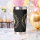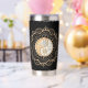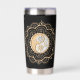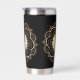 A symmetrical mandala design featuring intricate a yin yang floral pattern in gold and silver.