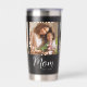 Being a mom is one of the most important jobs in the world. Show your favorite mom that you care with this custom 3 photo, stainless steel insulated thermal tumbler. Simple white script calligraphy and sans serif typography, along with your 3 personalized photos, overlay a black background. Personalize with the photos of your choice and the mom “established” year date when your first child was born. Add additional years for each child. And switch out “mom”, if desired, for however you call your mom or mum.