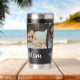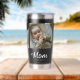 Custom Mom Established Modern Bold Script Black 3 Photo Insulated Tumbler with White Text on a Black Background. Replace the photos with your own and change the years to the year(s) you became a mom (add multiple years if you have more than one child). You can change "mom" to mum or mama if needed (leave the little square in place).
