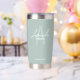 Monogramme et cadeaux de nom de Bridesmaid moderne Ce design présente le nom de femme d'honneur personnalisé en blanc moderne écriture script style de police et monogramme en vert sage moderne sans serif style de police comme arrière - plan, avec des détails mariages en blanc moderne sans serif style de police sur arrière - plan vert sage. Parfait aussi pour femme de ménage d'honneur, mère de la mariée et plus.