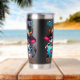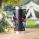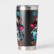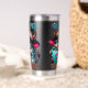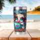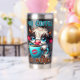 A funny and sarcastic design features a cute highland cow sitting with a steaming coffee mug that has a lipstick kiss mark on the front. The cow, with big blue eyes, glasses, and a soft expression, has black and white fur. Bright, colorful text reads: "No coffee, no workie." This playful design is available on various products, making perfect gifts for coffee lovers.