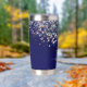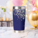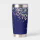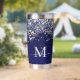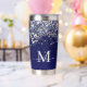 Elégant bleu marine avec holographique parties scintillant argenté isolant tumbler. Personnalisez-le facilement avec votre initiale et votre nom. Fait un cadeau personnalisé unique. c) Le Happy Cat Studio.