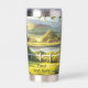 Tourniquet thermique représentant une peinture d'un cheval blanc dans un paysage vallonné. Avec texte personnalisé facultatif. Beau pour un amateur de cheval.