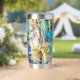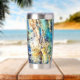 Cette photographie provient d'un minéral enrichi en calcium (feldspath plagioclase) appelé labradorite. Les bleus et les verts ont une qualité brillante, irisée (ou labradorescence) avec des formes irrégulières et des bandes de brun, noir, jaune et même une petite quantité de rose. Il s'agit d'une coloration commune pour la labradorite qui est souvent utilisée comme pierre de taille et est un favori parmi beaucoup de RockHounds.