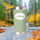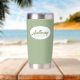 Offrez à votre toiletteur mariage ce tondeuse thermique en acier inoxydable personnalisé avec son nom en écriture stylisée dans un design ovale blanc. Arrière - plan et script est une couleur verte tendance, sage. Personnalisez votre tondeuse thermique en éditant et en remplaçant le nom du toiletteur par le nom désiré.