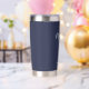 Ajoutez une touche personnelle à votre mariage avec un cadeau de toiletteur personnalisé. Ce design présente le nom de marionnettiste personnalisé en blanc style de police de script moderne et monogramme en bleu marine clair style de police de script moderne comme arrière - plan avec titre et date de mariage en blanc moderne sans serif style de police sur arrière - plan bleu marine. Parfait aussi pour femme de ménage d'honneur, fille de fleurs, mère de la mariée, groomsmen, meilleur homme, père de la mariée et plus encore.