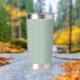 Stay grounded and hydrated wherever you go with this Retro Yoga Lover Tumbler. Featuring a calming yoga pose surrounded by colorful 70s-inspired swirls in sage green, orange, and gold, this design radiates mindfulness and positive energy. Sage green background.