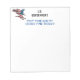 Funny government notepad. High-resolution graphic of bald eagle with American flag overlay. Text says, "First-time quality, second time around."