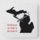 The state of Michigan is in black, with a red heart representing the Holland location and its GPS coordinates on a neutral speckled background.