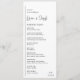 Modern wedding program featuring a simple and minimal geometric design with a vertical line along the left side with your details in left alignment. Your names are in a handwriting script for an elegant touch. In the bottom right corner is your two initial monogram over a small horizontal line. The colour palette may be changed in the design editing tool.