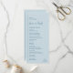 Modern wedding program featuring a simple and minimal geometric design with a vertical line along the left side with your details in left alignment.  Your names are in a handwriting script for an elegant touch.  In the bottom right corner is your two initial monogram over a small horizontal line.  The colour palette may be changed in the design editing tool.