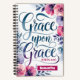 Un design d'aquarelle délicat avec des accents floraux doux encadrant l'expression Grace upon Grace. personnalisée avec nom.