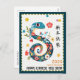 Send friends and family this traditional yet modern Chinese Lunar New Year greeting card to celebrate the upcoming Year of the Snake. The stamp border frames a graceful snake image adorned with colourful flowers, set against a subtle background of traditional auspicious clouds. The Chinese characters for "Happy Chinese New Year" appear in both calligraphy and English, conveying your warm wishes for the year ahead. In Chinese culture The Snake symbolizes wisdom, elegance, beauty and rebirth. Astrologists say that the Year of the Snake is a time to plan carefully, avoid hasty decisions, and trust in intuition.
