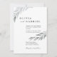 Beautiful watercolor dusty foliage botanical wedding Invitation. Airy watercolor chic grey branches of light cyan leaves.