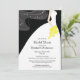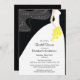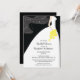 Commencez votre évènement avec notre belle silhouette de robe blanche et de voile flottant sur un arrière - plan noir aux accents jaunes.Invitation à la douche nuptiale. customisez simplement notre invitation avec vos informations mariages et vous êtes tous prêts à partir.