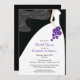 Start off your event off right with our beautiful silhouette of a white gown and flowing veil set on a black background with purple accents. Bridal shower invitation. Just customize our invitation with your wedding information and you're all set to go.
