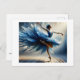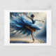 A dancer in a flowing blue dress strikes a pose on stage, surrounded by dynamic lighting. The scene exudes elegance with a touch of surrealism.