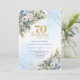Celebrate a milestone in style with this elegant 70th birthday invitation featuring watercolor dusty blue and white flowers, soft eucalyptus greenery, and a shimmering gold frame. Designed in chic boho style with refined script lettering, this floral invitation is perfect for a classy 70th birthday party. Ideal for formal, garden, or luxury celebrations with a timeless, sophisticated touch.